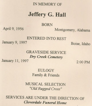 Special notation by Theresa McQueen Nix: "Jeff died of cancer. He was a very sweet, loving man. He loved all of his family so much and we all LOVE and MISS HIM SO VERY MUCH! He was married, and had two sons. His first son, Joshua died shortly after Jeff in a car accident."