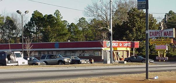 Dunk 'N Dine is now a carpet store. Notice the steam at the top of the original sign out front.
