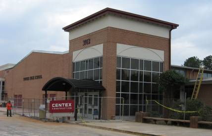Another view of the remodeled main entrance of the school